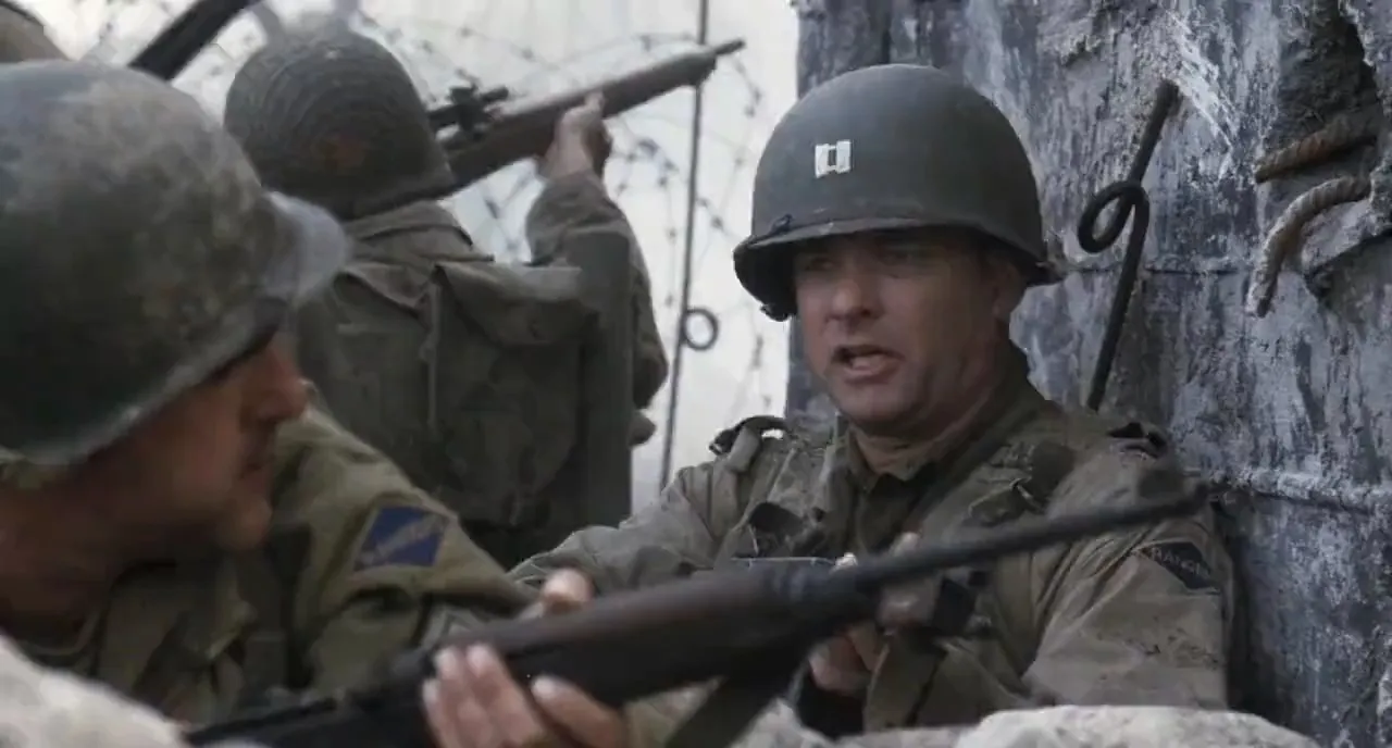 Cast: Tom Hanks as Captain John H. Miller, Tom Sizemore as Technical Sergeant Michael Horvath, Edward Burns as Private Richard Reiben, Matt Damon as Private James Francis Ryan, Barry Pepper as Private Daniel Jackson, Adam Goldberg as Private Stanley Mellish, Vin Diesel as Private Adrian Caparzo, Giovanni Ribisi as T-Medic Irwin Wade, Ted Danson as Captain Fred Hamill, Jeremy Davies as Corporal Timothy Upham, Paul Giamatti as Sergeant William Hill, Dennis Farina as Lieutenant Colonel Walter Anderson, Joerg Stadler as Steamboat Willie, Max Martini as Corporal Henderson, Dylan Bruno as Toynbe, Daniel Cerqueira as Weller, Demetri Goritsas as Parker, Ian Porter as Trask, Gary Sefton as Rice, Julian Spencer as Garrity, Steve Griffin as Wilson, William Marsh as Lyle, Marc Cass as Fallon, Markus Napier as Major Hoess, Neil Finnighan as Ramelle Paratrooper, Peter Miles as Ramelle Paratrooper, Paul Garcia as Field HQ Major, Seamus McQuade as Field HQ Aide, Ronald Longridge as Coxswain, Adam Shaw as Delancey, Rolf Saxon as Lieutenant Briggs, Corey Johnson as Radioman, Loclann Aiken as Soldier on the Beach, John Barnett as Soldier on the Beach, Maclean Burke as Soldier on the Beach, Victor Burke as Soldier on the Beach, Aiden Condron as Soldier on the Beach, Paschal Friel as Soldier on the Beach, Shane Hagan as Soldier on the Beach, Paul Hickey as Soldier on the Beach, Shane Johnson as Soldier on the Beach, Laird Macintosh as Soldier on the Beach, Brian Maynard as Soldier on the Beach, Martin McDougall as Soldier on the Beach, Mark Phillips as Soldier on the Beach, Lee Aaron Rosen as Soldier on the Beach, Andrew Scott as Soldier on the Beach, Matthew Sharp as Soldier on the Beach, Vincent Walsh as Soldier on the Beach, Grahame Wood as Soldier on the Beach, John Sharian as Corporal, Glenn Wrage as Doyle, Crofton Hardester as Senior Medical Officer, Martin Hub as Czech Wehrmacht Soldier, Raffaello Degruttola as Goldman, Nigel Whitmey as Private Boyd, Sam Ellis as Private Hastings, Erich Redman as German #1, Tilo Keiner as German #2, Stephan Grothgar as German #3 / Voice on Bullhorn, Stephane Cornicard as Jean, Michelle Evans as Jean's Wife, Martin Beaton as Jean's Son, Anna Maguire as Jean's Daughter, Nathan Fillion as Minnesota Ryan, Leland Orser as Lieutenant DeWindt, Michael Mantas as Paratrooper Lieutenant, David Vegh as Paratrooper Oliver, Ryan Hurst as Paratrooper Mandelsohn, Nick Brooks as Paratrooper Joe, Sam Scudder as Paratrooper #1, John Walters as Old French Man, Dorothy Grumbar as Old French Woman, James Innes-Smith as MP Lieutenant, Harve Presnell as General Marshall, Dale Dye as War Department Colonel, Bryan Cranston as War Department Colonel, David Wohl as War Department Captain, Eric Loren as War Department Lieutenant, Valerie Colgan as War Department Clerk, Amanda Boxer as Mrs. Margaret Ryan, Harrison Young as Ryan as Old Man, Kathleen Byron as Old Mrs. Ryan, Rob Freeman as Ryan's Son, Thomas Gizbert as Ryan's Grandson, Nina Muschallik as Ryan's Granddaughter (uncredited), Taylor Murphy as Sergeant Blaine (uncredited), Mac Steinmeier as Waffen SS Soldier (uncredited), Derek Lea as Bangalore Assistant (uncredited), Leo Stransky as German Sniper (uncredited), Vincent Ventresca as Soldier on Beach (uncredited)